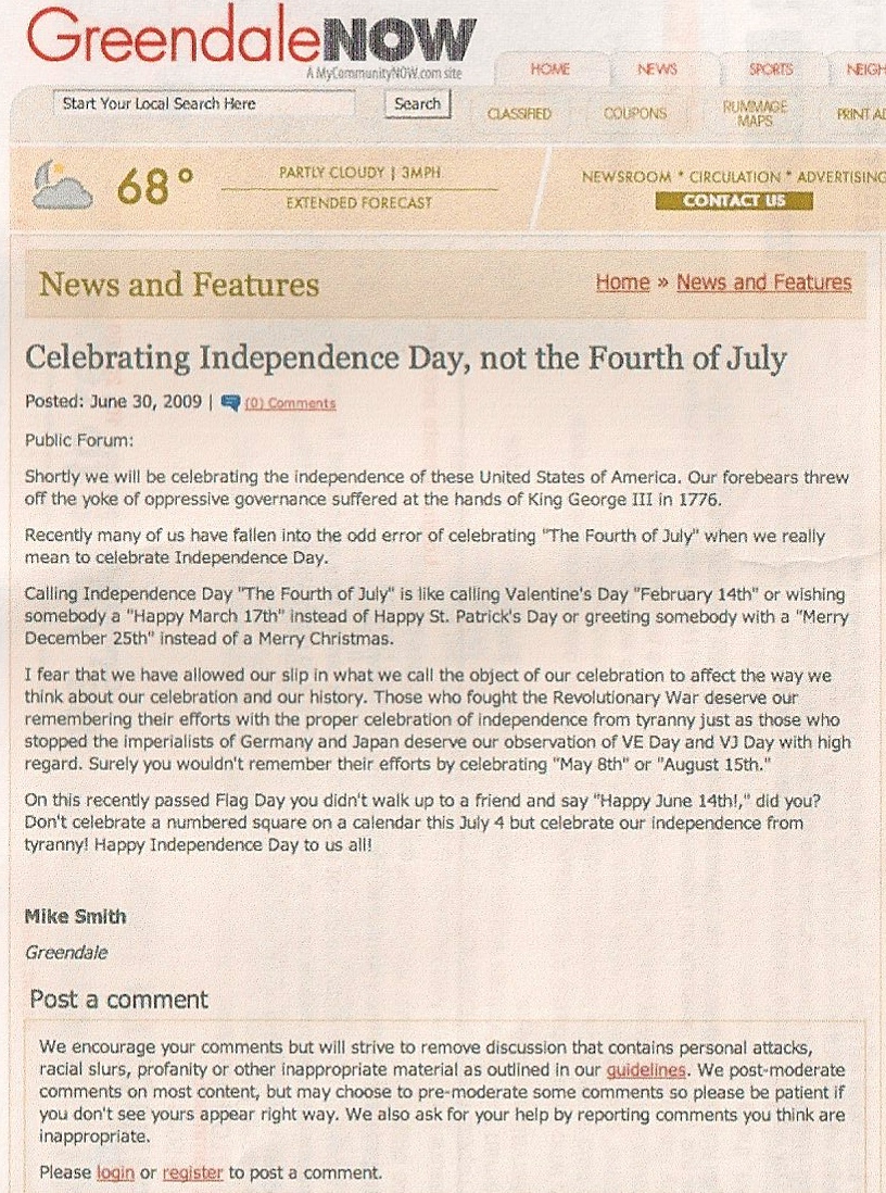 On calling Independence Day the 4th of July. An abbreviated epistemological exercise. (Here Online)