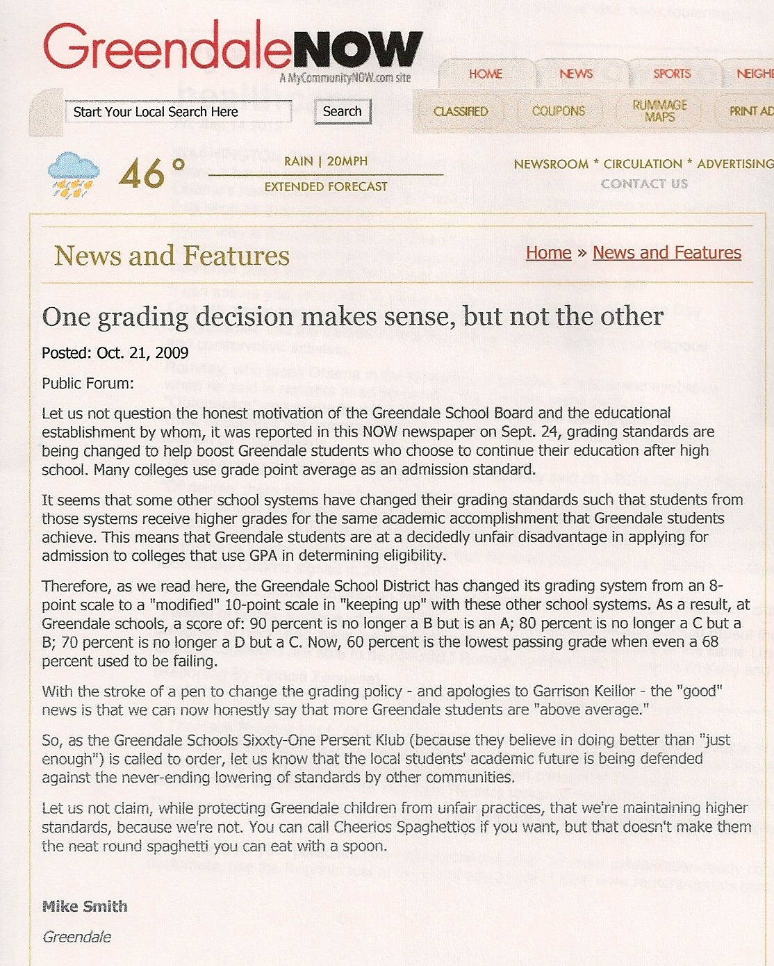 Grading students at Greendale Public Schools. Oh say can you "C" "A" "D"? (Here Online)